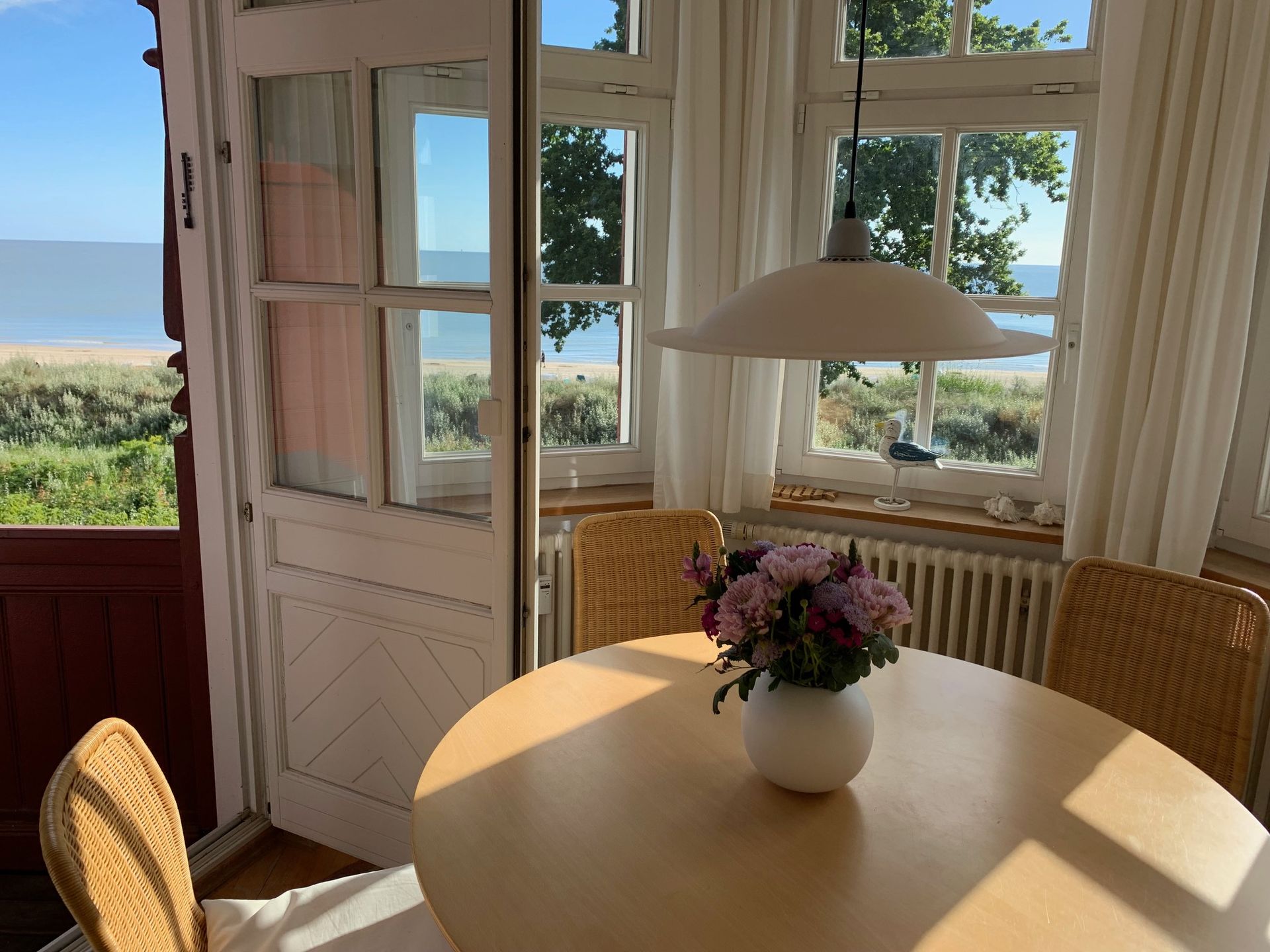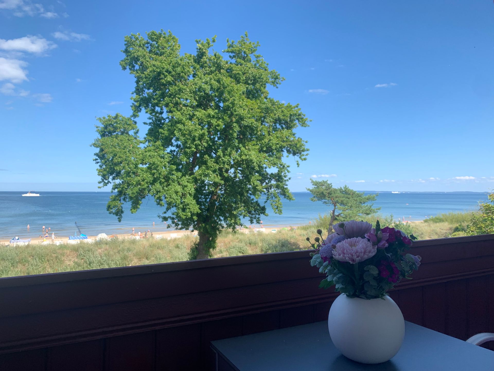 Die Wohnung 14 im 1.OG ist modern und qualitativ hochwertig eingerichtet. Die Ferienwohnung ist ausgelegt für bis zu 2 Personen und besteht aus einem großen Wohnraum mit freiem Blick auf das Meer sowie einer offenen Küche mit Theke. Vom romantischen Erker aus bietet sich ein traumhafter Blick über den Strand und die Ostsee. Seitlich am Erker gelangen Sie auf den großzügigen, nicht einsehbaren Balkon, welcher ebenfalls auf das Meer blickt. Am Eingangsbereich vorbei befinden sich das Schlafzimmer und das Badezimmer. Das Schlafzimmer mit großem Schrank und Doppelbett ist hell und freundlich eingerichtet. Auch im Bad (mit Fenster und Tageslicht) steht eine hochwertige Ausstattung inklusive Kosmetikspiegel, Ablagen und einer Runddusche zur Verfügung. Im Mietpreis eingeschlossen sind ein Parkplatz und - bei Verfügbarkeit - die Nutzung eines Strandkorbs (*kein Anspruch, in der Sommersaison nur auf Anfrage). Während Ihres Aufenthalts steht Ihnen kostenfreies WLAN zur Verfügung.